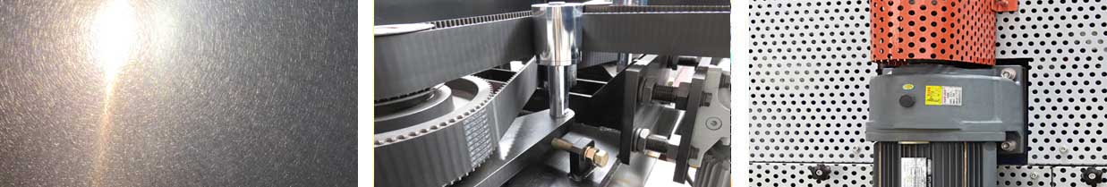 和紋表面,其砂紋遠(yuǎn)看似連圈砂紋,近看實則不規(guī)格的亂紋,亦俗稱“圈圈紋”,由磨頭各向不規(guī)則擺動磨成。吉力佳通過成熟的技術(shù)支持,于2014年新開發(fā)的高密度覆蓋和紋JLHW系列具有操作簡易、耗能少、生產(chǎn)效率高的特點。已獲得專利技術(shù)的磨頭衛(wèi)星式環(huán)形運動軌跡搭配特殊的磨料工藝,可以覆蓋表面上任何方向的微小空白。